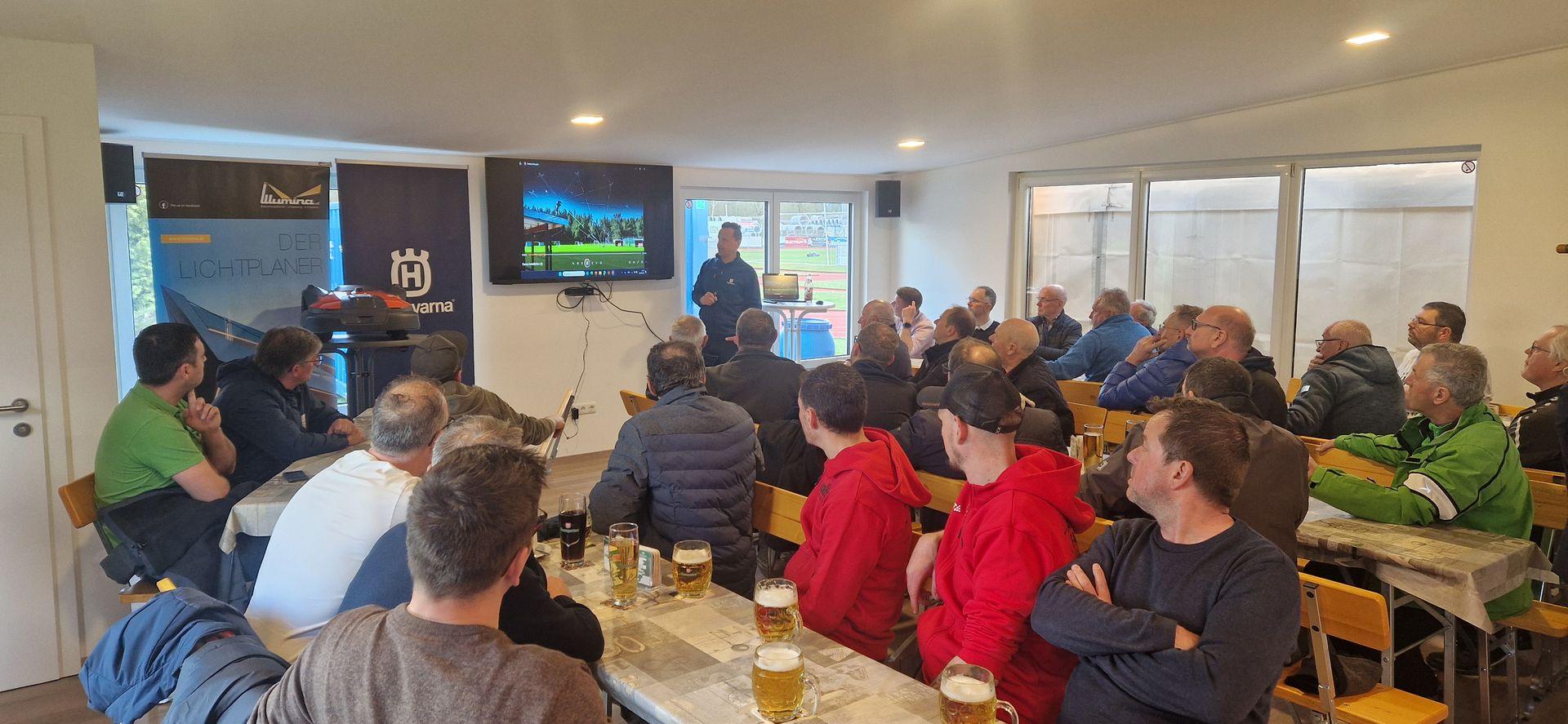 - Expertenpräsentationen rund um die Themen Flutlicht, Bewässerung, Rasenpflege, Markierfarbe, uvm.